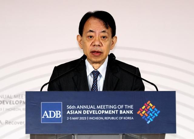 아사카와 마사츠구 아시아개발은행(ADB) 총재가 2일 오전 인천시 연수구 송도컨벤시아에서 열린 '제56차 아시아개발은행(ADB) 연차총회 한국세미나의 날' 행사에서 축사하고 있다. [사진=연합뉴스 ]