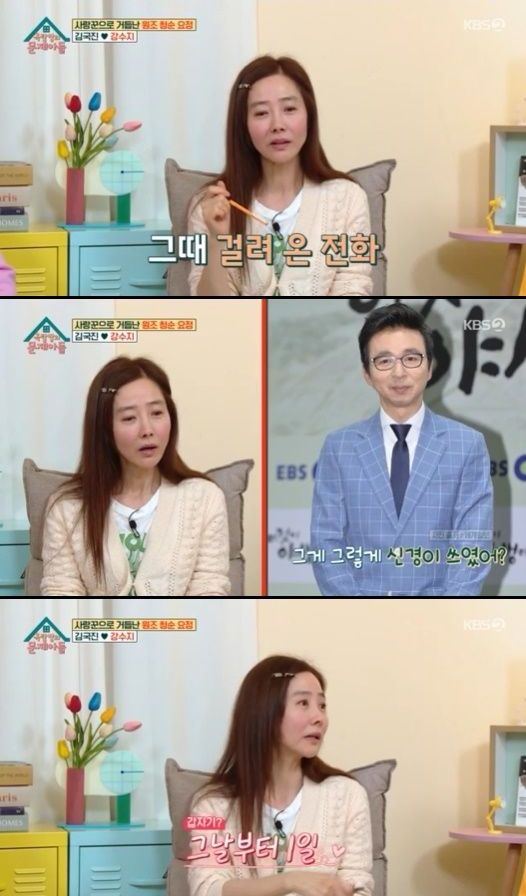 강수지는 김국진과 SBS '불타는 청춘'에 함께 출연한 뒤 연인이 된 과정을 설명했다.