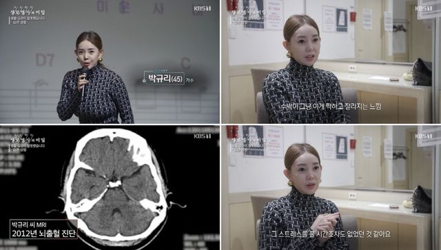 박규리는 지난 3일 방송된 KBS1 ‘생로병사의 비밀’의 ‘습관 성형’ 편에 사례자로 출연했다. 이날 박규리는 젊은 나이에 뇌출혈 진단을 받게 된 계기를 밝히는가 하면, ‘건강 전도사’로 제2의 인생을 시작하게 된 이유를 밝혀 시선을 모았다.