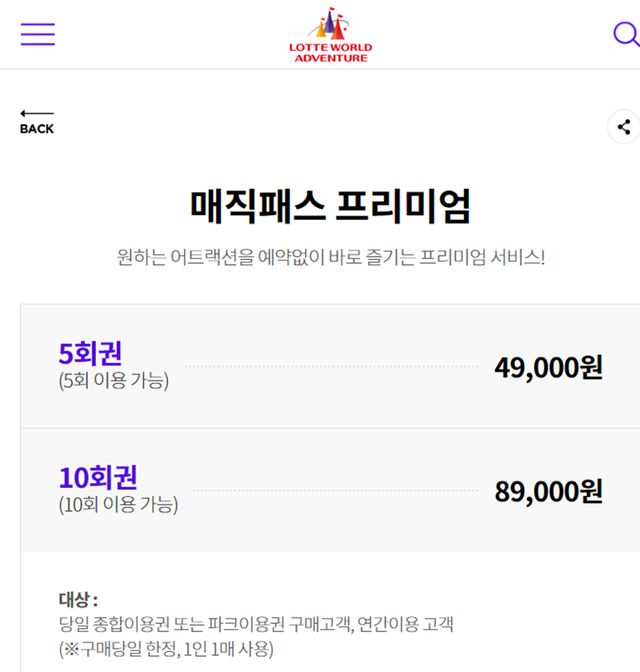 매직패스 10회 권 가격은 1장당 8만 9000원으로 4장 가격은 35만 6000원이다.