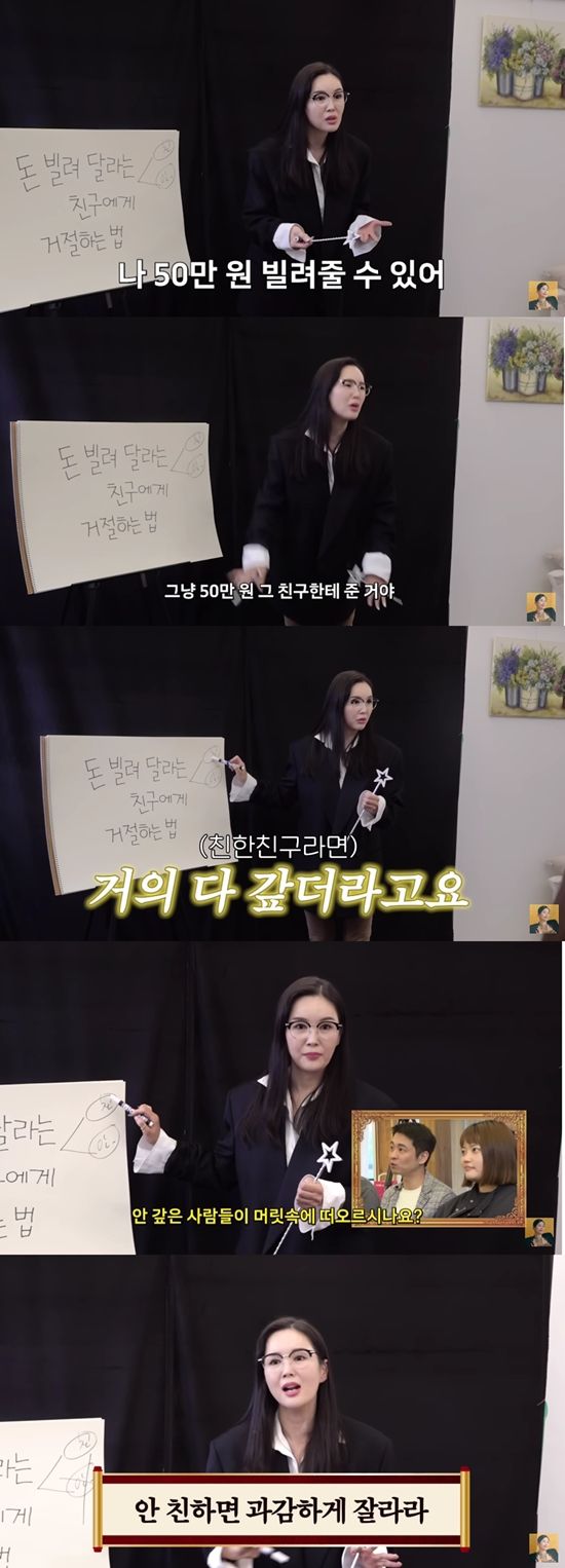 그러면서 "안 친한 친구라면 절대 돈 빌려주지 마라. 잘못 엮이면 큰코다치고 관계가 멀어진다. 과감하게 거절해야 한다"고 이야기했다.