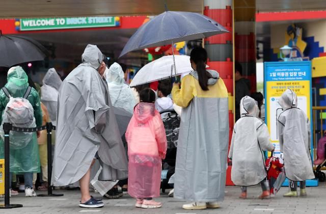 5日是韩国的儿童节,当天大部分地区迎降雨天气。位于江原道春川市的乐高乐园前,小朋友们身穿雨衣手撑雨伞在家长的带领下前来度过自己的节日。