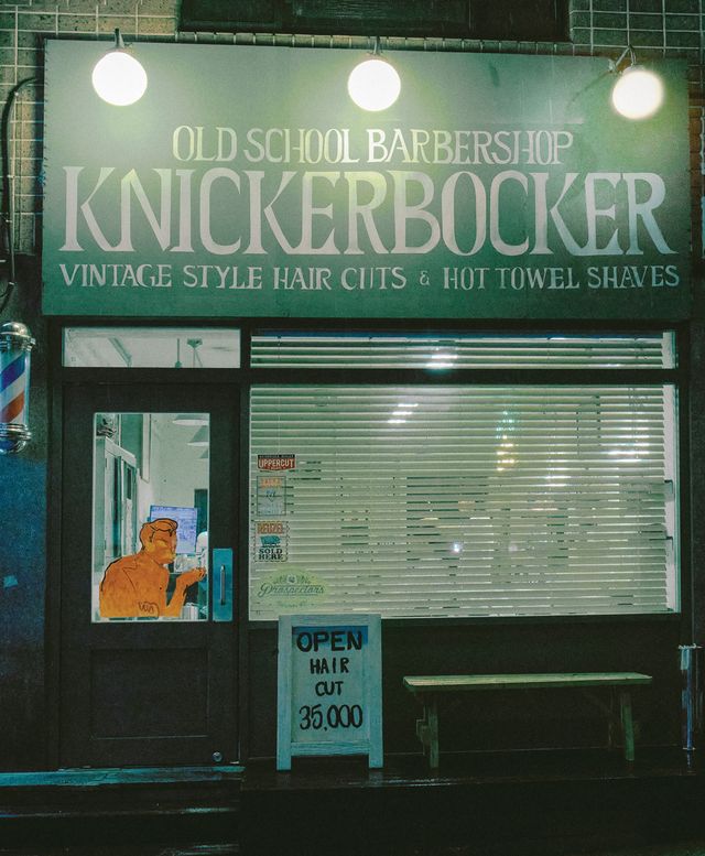 야구 역사에 관심이 많은 이라면 니커보커(Knickerbocker)라는 이름을 한 번쯤 들어봤을 것이다. 미국 역사상 최초의 공식 경기가 바로 1846년 뉴욕 나인과 뉴욕 니커보커스가 치른 승부이기 때문이다. 니커보커스는 세계 최초의 야구팀이기도 하다. 방배동에 위치한 니커보커 바버숍 또한 해당 클럽의 정통 서포터즈 무드를 한껏 담아냈다. 가게 외관은 빈티지 그린 컬러와 화이트 초크의 타이포그래피를 섞어상호명을 강조했다. 정갈한 외관에 비해 내부는 아늑하고 심플하다. 경기를 준비하는 야구팀의 더그아웃처럼 가구와 소품을 청키하게 채워 넣었다. 문을 열자마자 가장 안쪽에 자리한 니커보커스 네온사인 무드등이 눈길을 끈다. 야구 저지 모티브의 헤어 가운을 착용한 뒤에는 이발사와 함께 커트 및 라인 셰이빙에 대한 소통을 시작한다. 숍 대표인 이건호 이발사는 롱트림 베이스의 모즈 커트 스타일링을 가장 안정적으로 선보인다. 주로 강한 텍스처의 스타일링을 표현하는 데 능한 바버로, 기존의 고전적 바버링에서 벗어나 디테일 하나하나의 스포티함을 살리는 것이 특징이다. 커트가 끝나면 눈썹·구레나룻·귀·뒷목 잔털 등 라인 셰이빙이 이어지며, 두피 마사지와 함께 웰컴 드링크인 복분자 음료를 즐길 수 있다. 재미있는 부분은 고객과 함께 온 일행을 위해 플레이스테이션 5가 준비되어 있다는 것. 베이스볼 클럽의 더그아웃을 모티브로 한 만큼 ‘MLB 더 쇼 23’, ‘FIFA 23’, ‘NBA 2K23’ 등 스포츠 게임이 주를 이룬다. 숍의 시그너처 굿즈인 라이터의 존재 또한 신선하다. 참신한 스타일링과 함께 프라이빗한 분위기를 체험하고 싶다면 적절한 선택지가 되어줄 것이다.