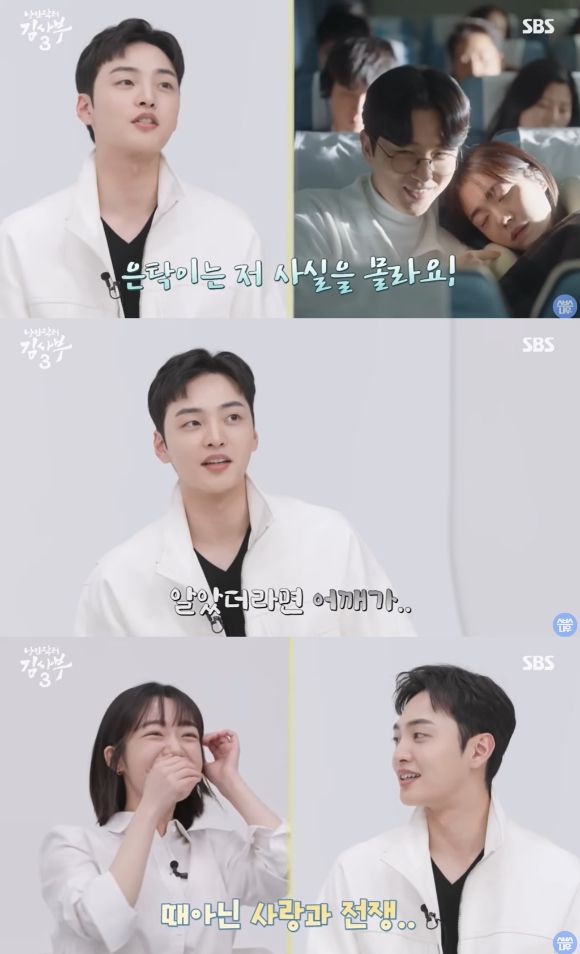 이에 김민재는 "은탁은 저 사실(문정의 어깨에 기댄 것)을 모른다. 알았다면 어깨가..."라고 질투를 했다. 이어 김민재는 소주연에게 "진짜 왜 그러냐. 3년 동안 힘들다. 어디까지 맞춰줘야 하냐"라고 투정을 해 웃음을 안겼다.