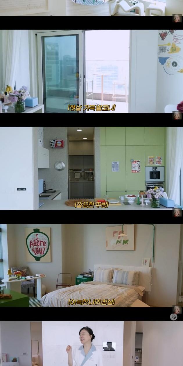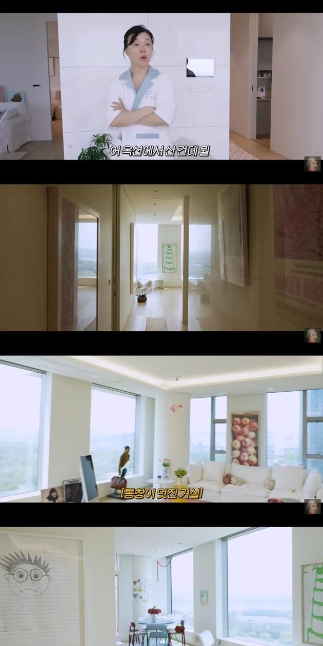 이날 영상에서 최화정은 통창이 멋진 거실과 햇살이 들어오는 발코니, 아늑한 침실 및 곳곳에 미술품으로 인테리어가 된 세련된 집을 공개했다. 특히 거실에는 수많은 미술품이 배치돼 시선을 끌었다.
