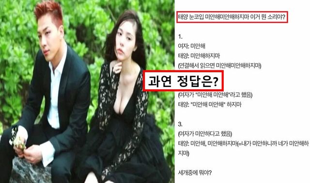 이에 태양은 "지금 생각하면 말도 안되는 가사다"라고 공감하는 모습을 보이면서도 당시 연애 경험이 전무한 상태였다고 해명했습니다.