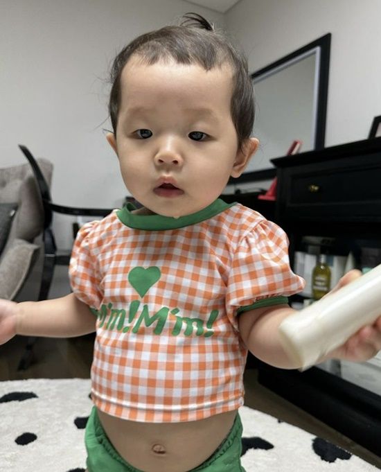 공개된 사진 속에는 엘리 양의 귀여운 비주얼이 담겼다. 볼록한 배를 드러낸 채 무언가 손에 쥐고 있는 엘리 양의 귀여운 모습이 랜선 이모, 삼촌들을 미소 짓게 만드는 동시에 좋지 않은 컨디션에 걱정스러운 마음도 키웠다.