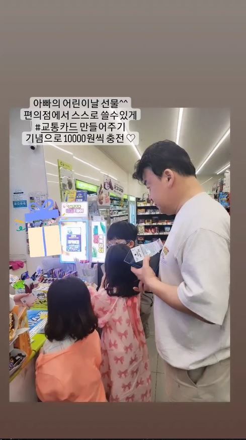 소유진은 6일 자신의 인스타그램에 "아빠의 어린이날 선물^^ 편의점에서 스스로 쓸 수 있게 교통카드 만들어 주기 기념으로 1만 원씩 충전"이라며 사진을 게재했다.