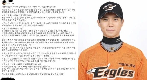 이 프로야구 선수는 2006년 서울의 초등학교 재학 당시에 자신에게 학폭을 가했으며 문화상품권을 사준다고 거짓말을 했다는 이유로 자신의 몸과 얼굴을 가격했다고 말을 했다.
