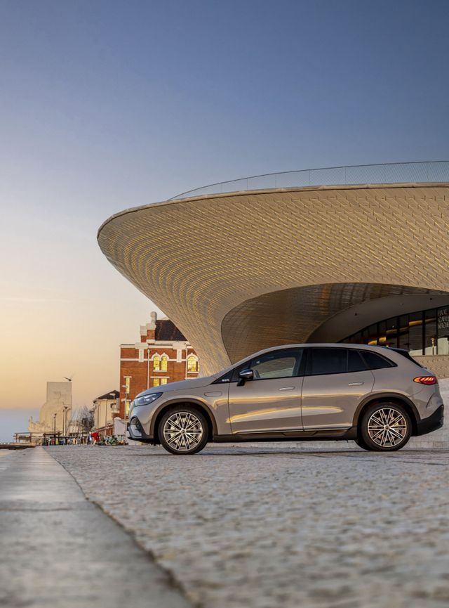 결론부터 말하면, EQE SUV는 염려와 달리 리스본의 좁고 복잡한 구시가지 길을 보기 좋게 빠져나갔다. 비결은 ‘리어 액슬 스티어링’과 ‘에어매틱’이다. 리어 액슬 스티어링은 차가 저속으로 달릴 때 차의 진행 방향과 반대 방향으로 최대 10도까지 뒷바퀴를 움직이는 기술이다. 이렇게 하면 차의 휠베이스가 짧아져 보다 민첩하게 코너를 돌아 나갈 수 있다. EQE SUV의 경우 리어 액슬 스티어링 덕에 회전반경이 12.3m에서 10.5m로 줄었는데 이는 소형 해치백인 A클래스의 회전반경과 비슷한 수치다. 리어 액슬 스티어링이 차체를 민첩하게 움직이는 데에 도움을 줬다면, 에어매틱은 울퉁불퉁한 노면에서 올라오는 불쾌한 충격을 최대한 걸러내는 역할을 했다. 메르세데스-벤츠는 전자식 가변 댐핑 시스템과 에어 서스펜션을 결합한 하체 세팅을 에어매틱이라고 부른다. 예를 들면, 자갈밭을 지나갈 때 에어 서스펜션을 이용해 차체를 살짝 높이거나 댐퍼의 감쇄력을 덜 단단하게 바꾸어 자잘한 충격으로부터 운전자를 보호하는 식이다.