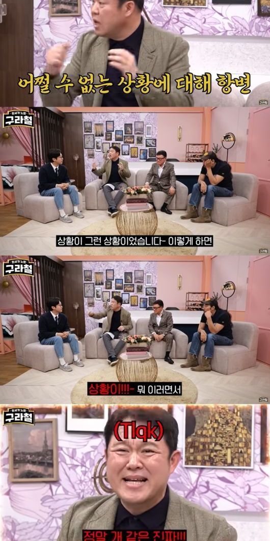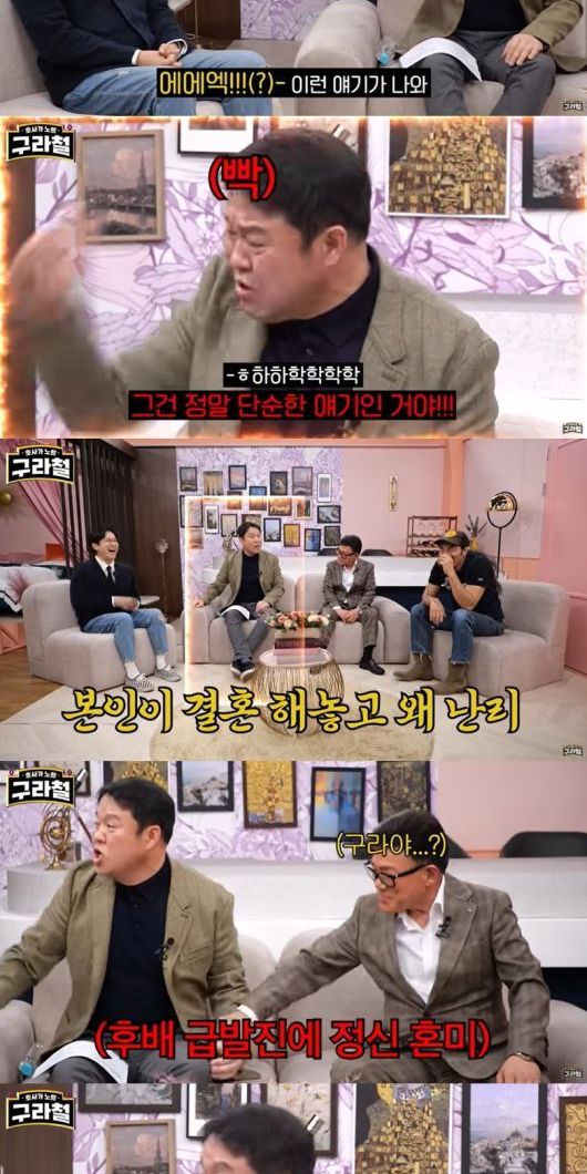 김구라는 "만났어, 사랑해 깊은 관계까지 갔어! 그런데 (나는) 재혼남이니까 조금 천천히 하고 싶은데 이쪽(현재 아내)은 초혼이니까 그것도 예의가 아닌 것 같다고 했는데 이렇게 얘기를 하면 그렇게 비난한다"며 목소리를 높여 웃음을 더했다.