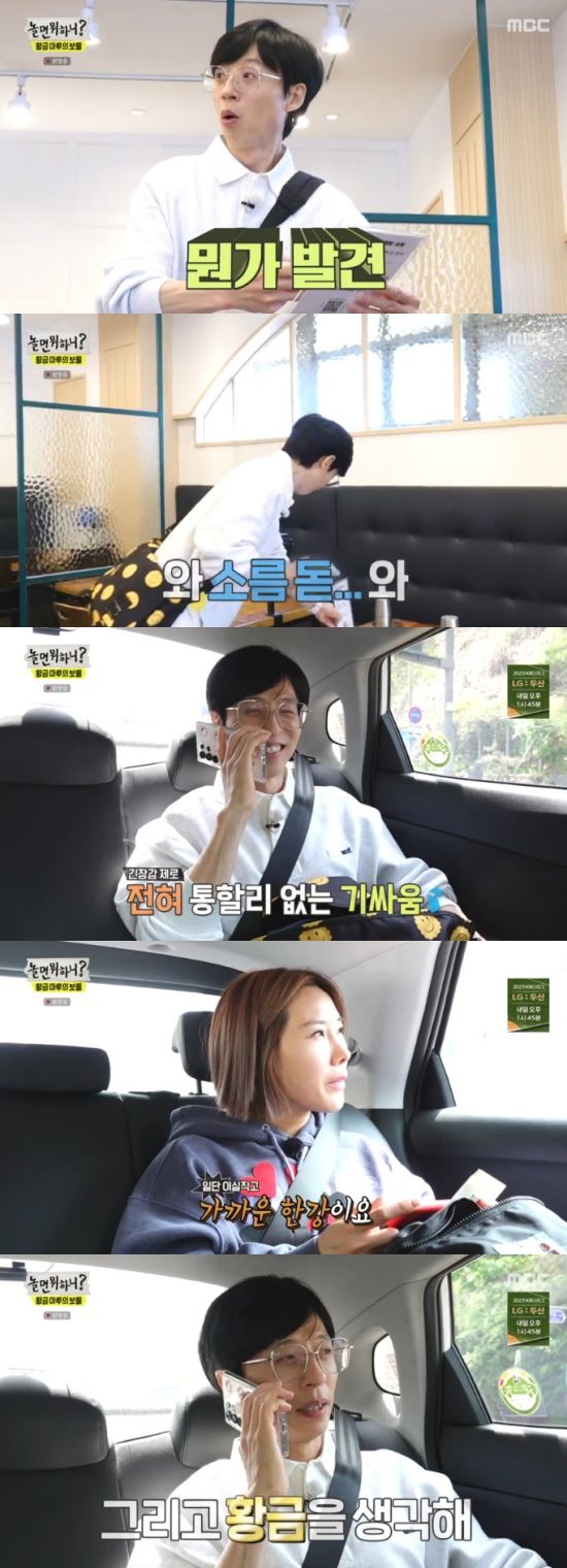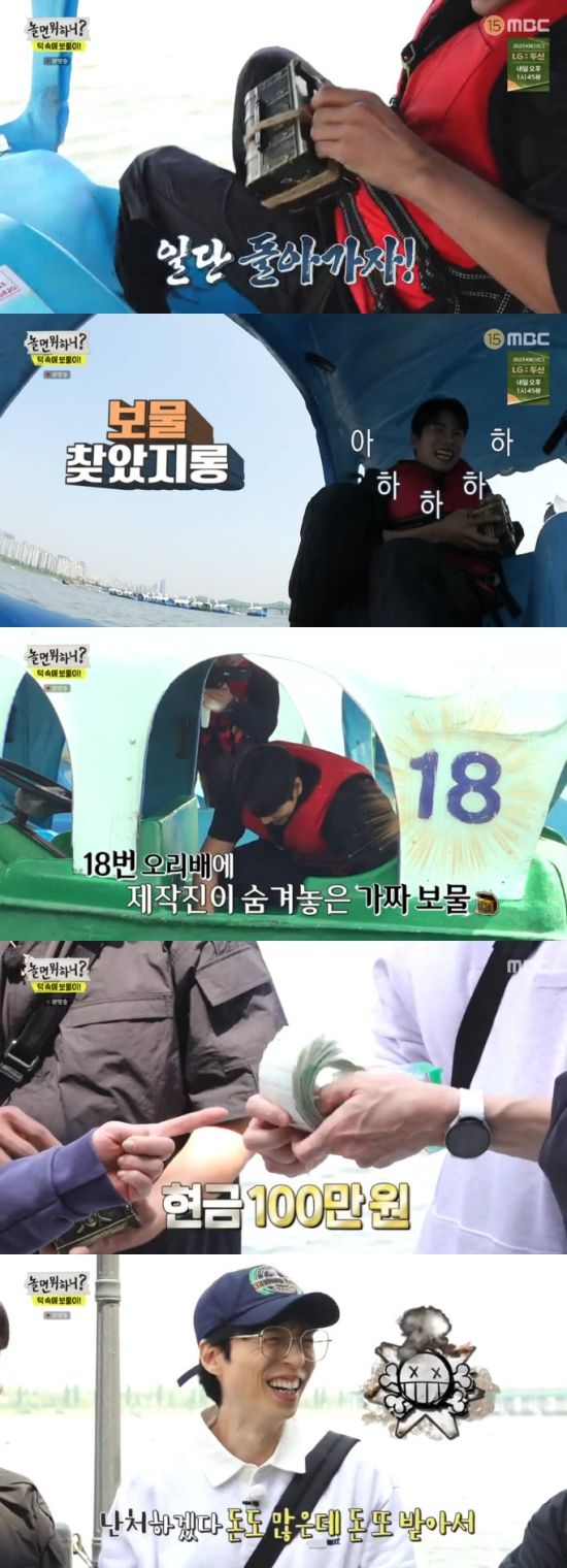 (엑스포츠뉴스 이이진 기자) 방송인 유재석이 현금 100만 원이 든 보물상자를 찾았다.