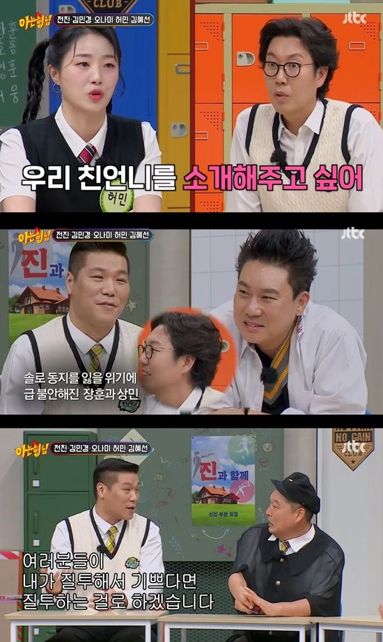 이날 허민은 "개인적으로 (김)영철이를 친언니에게 소개해주고 싶다"고 말했고, 동요하는 멤버들을 향해 "우리가 언니가 좋다고 하더라. '아는 형님'에 나온다고 하니까, 그럼 소개 좀 잘 시켜달라고 했다"고 얘기했다.