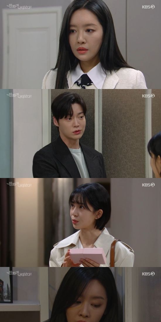 6일 방송된 KBS 2TV 주말드라마 '진짜가 나타났다' 13회에서는 장세진(차주영 분)이 공태경(안재현)과 오연두(백진희)의 관계를 의심하는 모습이 그려졌다.