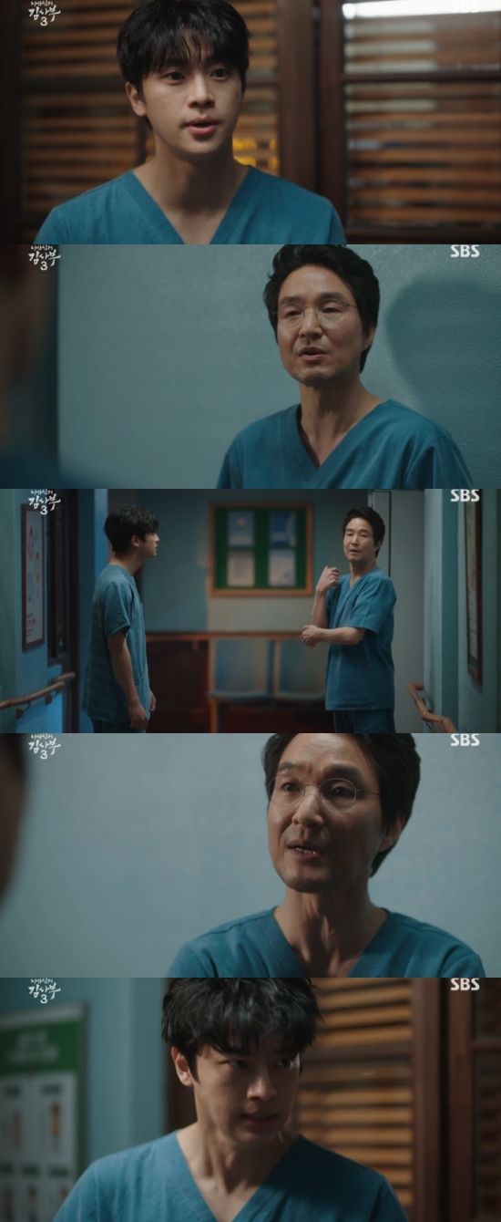 6일 방송된 SBS 새 금토드라마 '낭만닥터 김사부3' 4회에서는 서우진(안효섭 분)과 차진만(이경영)이 신경전을 벌이는 모습이 그려졌다.