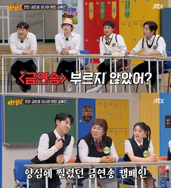 "팬 분들이 귀엽게 봐주시더라"고 말한 전진은 이어 "금연송 부르지 않았냐"는 김희철의 말에 "우리 (신화) 멤버들이 그 때 다 흡연을 했었다. 그래서 후배들은 금연을 했으면 하는 마음으로 뮤직비디오를 찍었었다"고 설명했다.