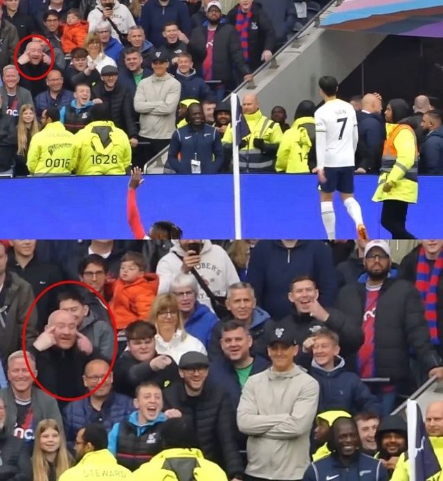이 과정에서 팰리스 원정석도 지나가게 됐다. 토트넘 훗스퍼 스타디움은 북쪽 스탠드 쪽에 원정석이 있다. 이곳을 지나가던 손흥민은 인종차별을 당했다. 유튜브 '만돌tv' 채널은 "손흥민 선수에게 인종 차별적 제스처를 한 원정팬을 발견하였습니다. 현재 토트넘 구단 측에 이메일을 보내놓은 상태입니다. 앞으로는 이런 사건이 절대 발생하지 않기를 바랍니다"라며 영상을 공개했다.