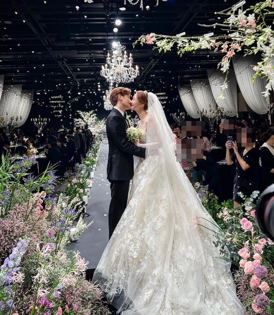 최성준은 "두 분 너무 축하합니다"라는 글과 함께 사진을 게재했고, 공개된 사진 속에는 세븐과 이다해가 버진로드 끝에서 환한 표정으로 입을 맞추며 미소 짓고 있는 모습을 볼 수 있다.