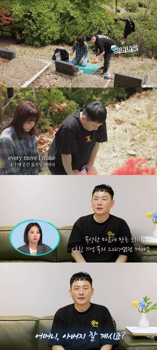 이후 어머니 묘소를 찾아간 현진영은 묘비를 닦으며 "내가 요새 바빴다. 아들이 자주와야 하는데 미안하다"라며 죄송한 마음을 드러냈다. 이어 어머니가 생전에 좋아하셨던 커피와 바나나, 어버이날 기념 카네이션을 올린 뒤 기도했다. 현진영은 "어머니의 얼굴을 또렷이 기억한다고 생각하고 있는데 은연중에 기억하면 흐릿하게 기억이 났다. 그래서 만든 노래가 '흐린 기억속의 그대'다. 연인의 이야기가 아니다"라며 비하인드를 전해 시청자들의 눈물샘을 자극했다.