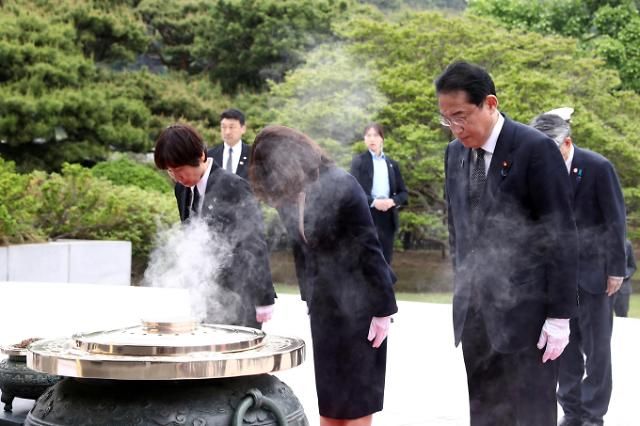 7日,日本首相岸田文雄和夫人岸田裕子抵达首尔,正式开启对韩国为期两天的工作访问。岸田文雄访韩首个日程是前往位于首尔铜雀区的国立首尔显忠院进行参拜。