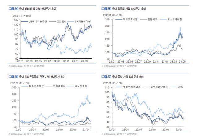그는 다만 “미국 인플레이션감축법(IRA) 정책 중 첨단제조생산세액공제(AMPC), 우려 외국 집단 등에 대한 조항 구체화가 상반기 내 진행될 것으로 기대한다”며 “미국 IRA 정책의 기본 취지가 있기 때문에 조항이 구체화된다면 중국 공급망에 대한 불확실성은 해소될 것”이라고 봤다.