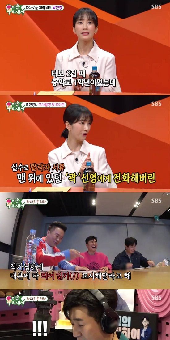 곽선영은 데뷔작 오디션에 숨겨진 에피소드를 공개했다. 곽선영은 “대학교 4학년 여름방학부터 갑자기 불안한 거다. 빨리 취업해야겠다는 생각에 뮤지컬 오디션에 지원을 했다”라면서 “그때만 해도 경력이 없는 대학생은 서류에서 무조건 탈락이었다. 그런데 서류가 붙었다고 전화가 온 거다”라고 이야기를 시작했다.