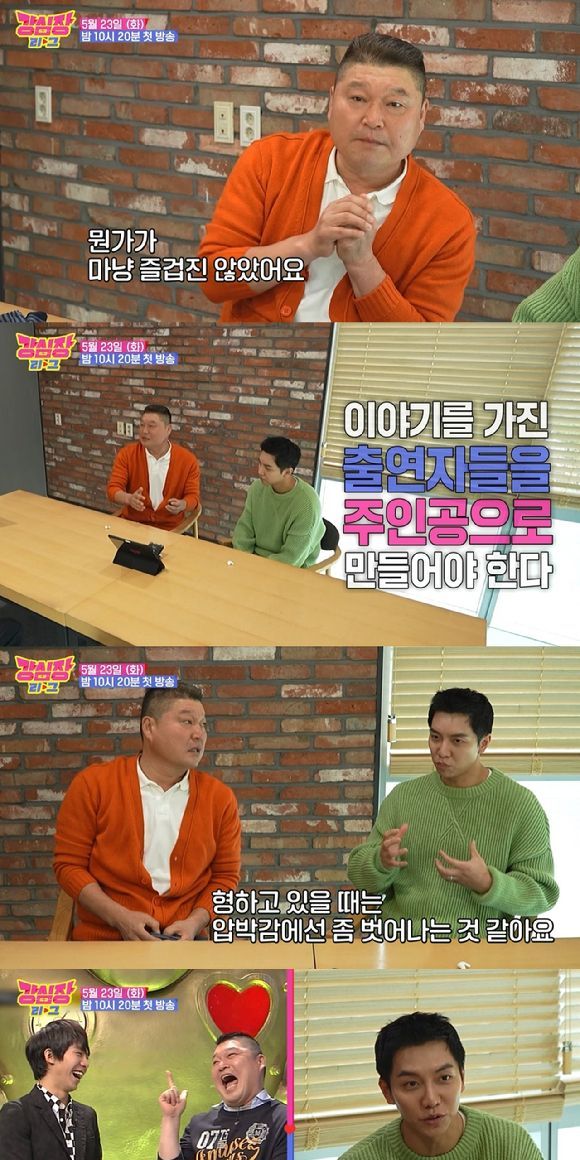 강호동, 이승기는 배우 송중기, 수지, 신민아, 지드래곤 등 톱스타들이 출연했던 과거 '강심장' 주요 클립을 함께 보며 새롭게 돌아오는 '강심장리그'에 대한 솔직한 생각을 털어놓았다. 강호동은 "(영상을 보니) 재밌으면서도 뭔가 마냥 즐겁진 않았다. 우리는 또 다시 시작을 해야 되고 과거의 '강심장'을 뛰어 넘어야 한다"라며 "이야기를 가진 출연자들을 주인공으로 만들어야 한다는 압박이 벌써 시작됐다"고 말했다.
