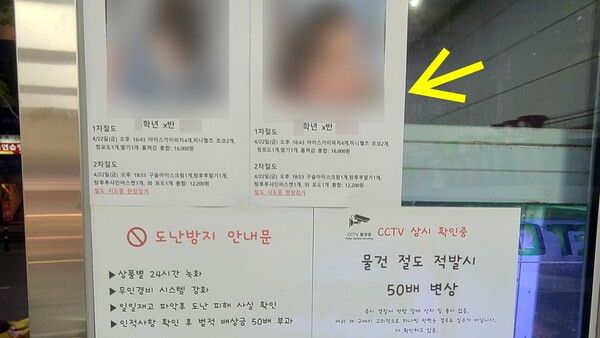 공고문 하단에는 '물건 절도 적발 시 50배 변상', '상품별 24시간 녹화', '무인경비 시스템 강화', '일일재고 파악 후 도난 피해 사실 확인' '24시간 녹화' 등의 문구가 기재된 경고문도 붙었다. 이 경고문에 제시된 '50배 변상'은 비슷한 민사 분쟁에서 통상적으로 이뤄지는 합의 수준이다.