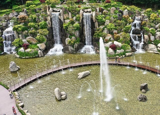 경기도 안산시 노적봉인공폭포공원을 찾은 시민들이 폭포수를 바라보고 있다. [사진=연합뉴스]