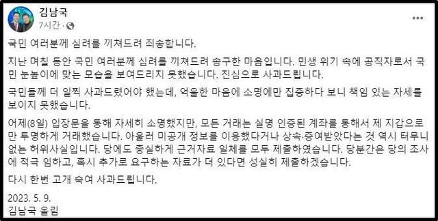 다음은 김남국 의원이 남긴 사과문이다.
