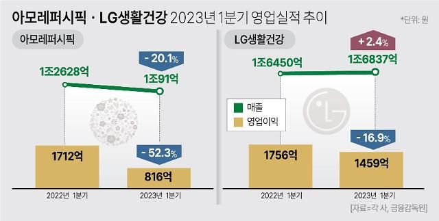 9일 금융감독원에 따르면 아모레퍼시픽과 LG생건의 1분기 영업이익은 전년대비 두자릿수 이상 감소했다.