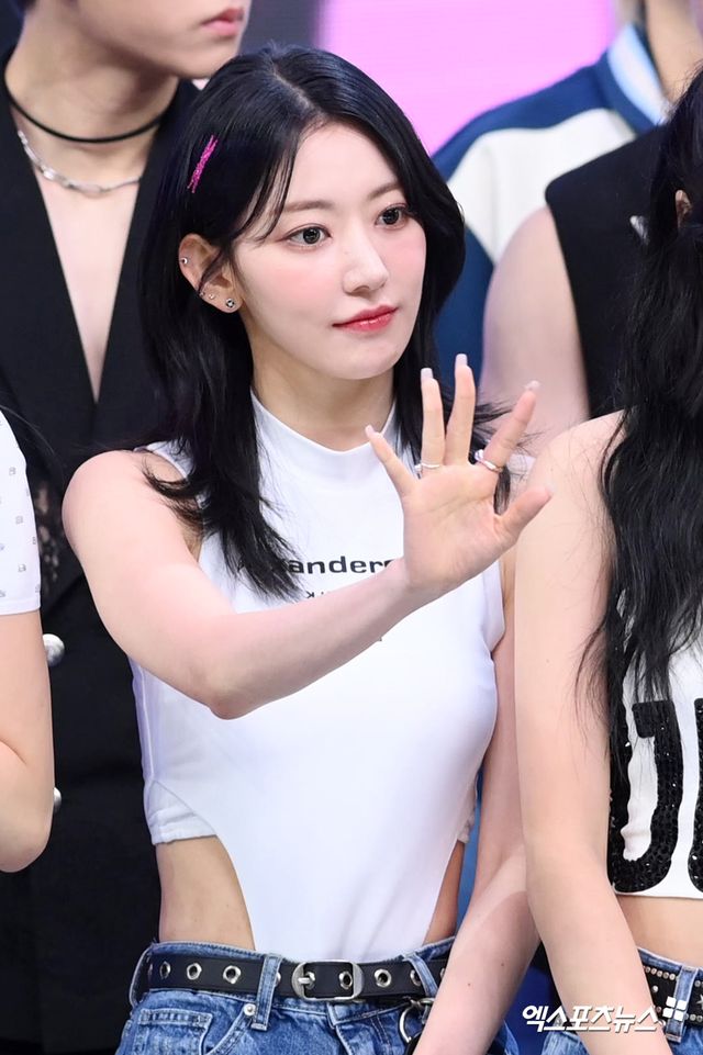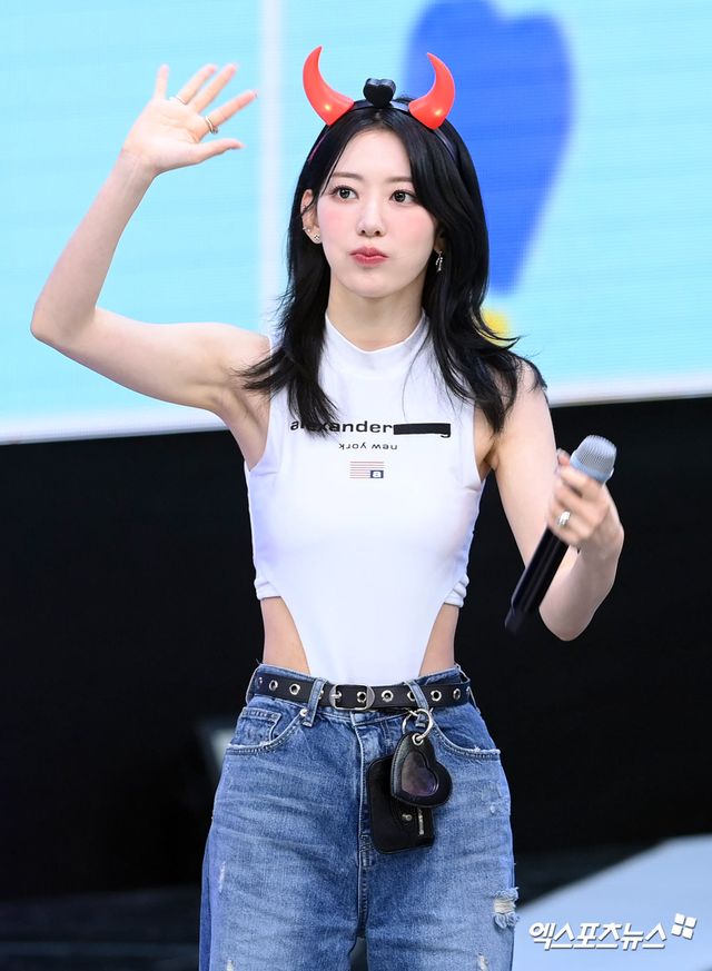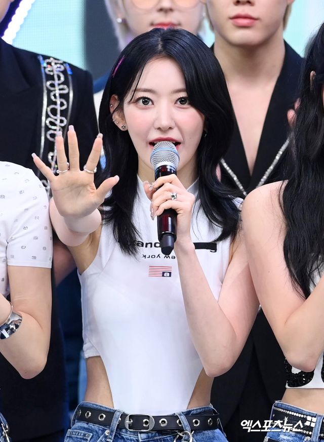 이날 더쇼에 참석해 더쇼 초이스 1위를 수상한 르세라핌 사쿠라가 앵콜 무대를 펼치고 있다.