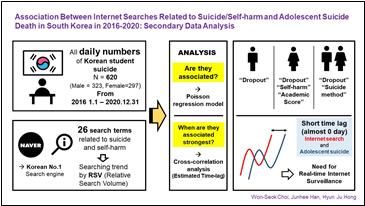 여의도성모병원 정신건강의학과 최원석 교수팀(한림대학교성심병원 정신건강의학과 홍현주 교수, 교신저자)은 2016년 1월부터 2020년 12월까지 국내에서 사망한 13세부터 18세 학생들의 익명화된 자살사망 데이터(교육부, 한림대학교 자살과 학생정신건강연구소)를 네이버 데이터랩(Naver Datalab)에서 추출한 총 26개 국내 청소년 자살 및 자해 관련 단어 검색량과의 연관성을 다변량 회귀분석을 통해 확인했다.