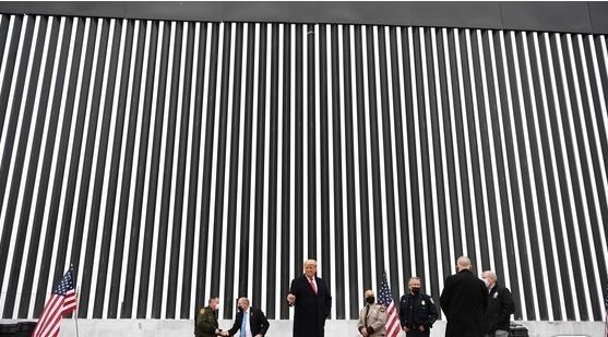 지난 2021년 1월 당시 도널드 트럼프 미국 대통령이 텍사스주 알라모의 미국-멕시코 국경장벽을 시찰하고 있다. / 뉴스1