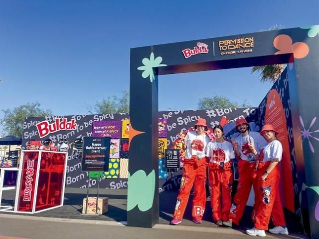2022年,韩国组合防弹少年团(BTS)在美国举行演唱会期间,三养食品在演唱会场馆前设置宣传展台。【图片提供 三养食品】
