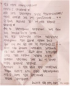 B씨(40·여)도 최근 중환자실에서 목격한 간호사들의 따뜻한 모습에 감사를 표했다. 선천성 심장질환으로 최근 수술을 한 B씨는 마취에서 깨어난 뒤 극심한 통증에 시달렸다. 이대로 잠들면 다시 눈을 못 뜰 거 같다는 불안감에 잠을 이루지도 못했다. 그렇게 뜬 눈으로 지낸 지 14시간. B씨가 볼 수 있는 건 그저 간호사들의 일하는 모습뿐이었다. 간호사들은 환자들의 각종 불편한 요청에도 미소를 잃지 않았다. 목소리가 안 나와 손짓을 해도 즉각 달려와 해결했고, 거동이 불편한 환자들의 배변을 치우는 것도 아랑곳하지 않았다. 회복 후 일반병동으로 몸을 옮긴 B씨는 곧바로 감사의 손편지를 간호사들에게 전달했다.