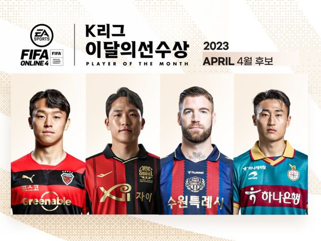[인터풋볼] 하근수 기자= 한국프로축구연맹(총재 권오갑, 이하 ‘연맹’)과 K리그 공식 비디오게임 파트너 일렉트로닉아츠(Electronic Arts, 이하 'EA')가 선정하는 'EA SPORTS K리그 이달의선수상(EA SPORTS K LEAGUE Player Of The Month)'의 23시즌 4월 후보가 공개됐다.