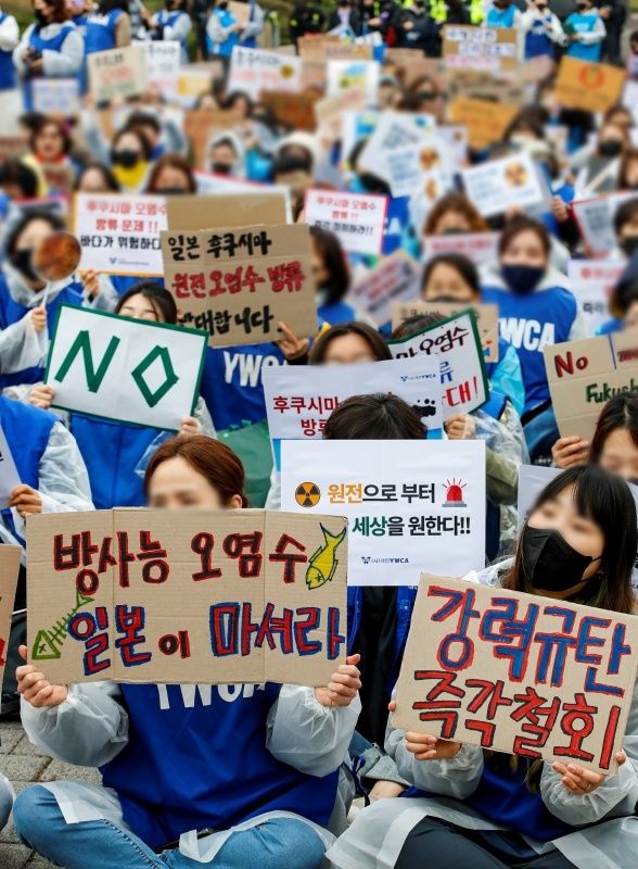 '후쿠시마 방사능 오염수 해양투기 반대 캠페인'을 열고 시위하는 사람들의 모습 / 뉴스1
