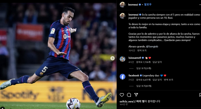 오랜 시간 바르셀로나에서 중추적인 역할을 수행했던 부스케츠가 세월이 흐름에 따라 정든 클럽을 떠난다고 발표하자 절친한 친구 메시가 메시지를 남겼다.