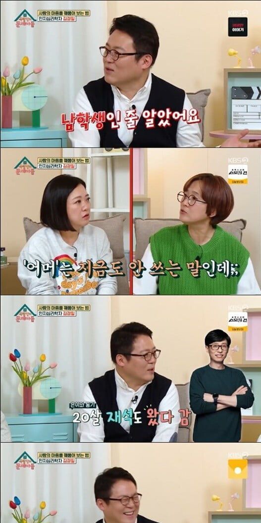 이날 방송에서 김경일은 "송은이에게 석고대죄를 하러 왔다고?"라는 김종국의 물음에 "송은이 씨를 32년 전에 봤다"며 "김경식이 학교에 놀러오라고 해서 작은 호프집에서 한참을 마셨다. 술 마시면 쉽게 친해지잖아. 그래서 제가 헤어질 때 '야 잘 가라~ 인마~' 하고 어깨를 툭 쳤다. 전 그때까지 남학생인 줄 알았다. 죄송하다"고 고백했다.