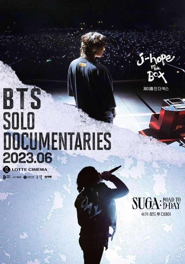앞서 디즈니+를 통해 공개된 제이홉과 슈가의 솔로 활동 다큐멘터리도 오는 6월 국내 롯데시네마를 비롯해 전 세계 극장에서 개봉한다. ‘제이홉 인 더 박스’와 ‘슈가: 로드 투 데이’가 그 주인공. OTT로 선공개된 다큐멘터리가 국내는 물론 해외 극장에서도 개봉하는 경우는 지극히 이례적이다. 멤버들의 군백기에 아쉬움을 느낄 아미들에게 뜻깊은 선물이 될 전망이다.