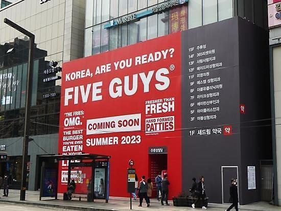 Five Guys, also known in South Korea as one of the United States' top three burger chains, was brought into South Korea by Hanwha Galleria, the retail wing of South Korean conglomerate Hanwha Group. Five Guys will open its very first South Korean store with some 150 table seats in Gangnam in June.
