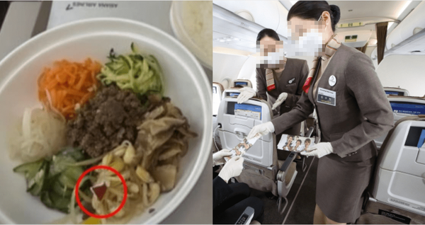 A 씨는 "곧장 승무원에게 알렸지만, 문제의 기내식을 가져가기에 급급해 보였다"며 "찍은 사진을 보여주자 사무장님이 오셔서 계속 사과했고 제 사진을 찍어 가셨다. 전 통증 때문에 간식이나 식사를 제대로 하지 못하고 누워만 있었다"고 했다.