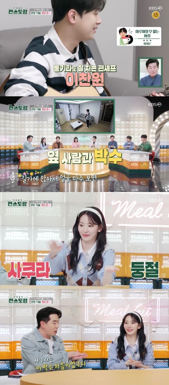 이날 공개된 VCR에는 이찬원이 기타를 치면서 노래 부르기에 한창인 모습이 전해졌다. 붐은 "기타 치는 모습 처음 본다"며 감탄했다.