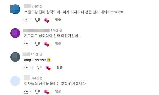 지그재그 모델이 공개되고 지그재그 영상에 올라온 반응들. / 이하 유튜브 지그재그