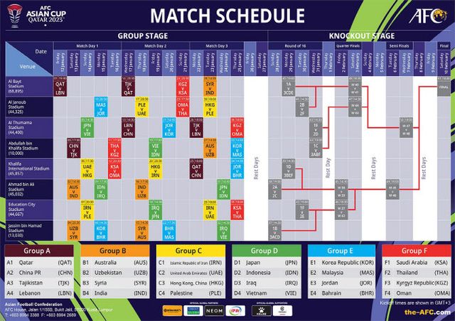 아시안컵은 총 24개국이 4개 팀씩 6개의 조로 편성된다. 각 조 1, 2위 팀에 3위 팀 중 성적이 좋은 4개 팀이 16강 토너먼트를 구성한다. 애초 오는 여름 중국에서 열릴 예정이었다. 하지만 코로나19 여파로 개최권을 반납했고 카타르가 새로운 개최국이 됐다.