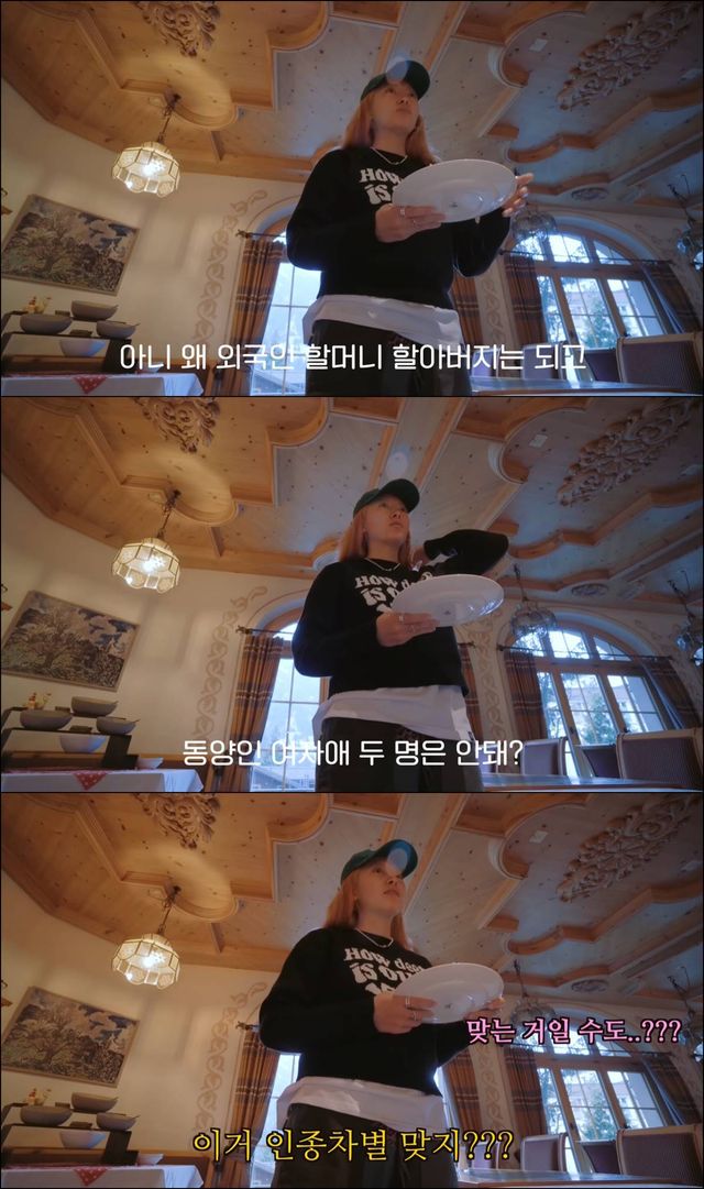 황당한 일은 또 있었다. 그래쓰는 자리에 돌아온 뒤 주변을 둘러보고는 "이게 우연인지 아니면 내가 지금 예민한 건지 모르겠는데 우리가 앉아 있는 공간에는 아시아, 인도계 사람들이 몰려 있고 바깥 테라스 공간에는 소위 말해 백인들이 모여 있다. 이게 맞는 건가? 기분이 너무 더럽다"라고 말했다.