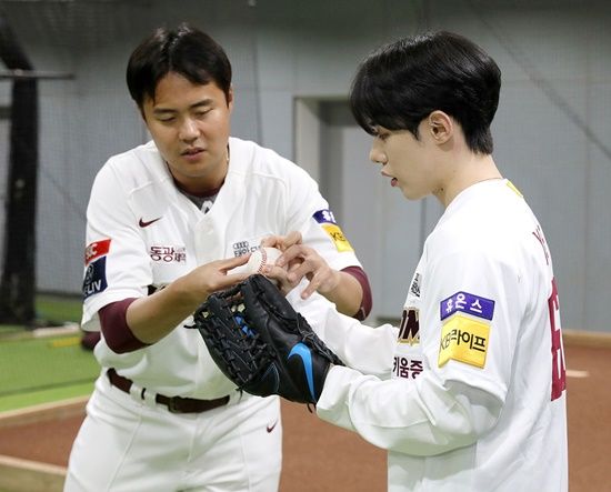 대기실에서 야구 연습실까지 이동 거리는 약 5분 남짓. 이들이 시구·시타 연습하는 공간은 실제 구단 직원 및 선수 등 관계자 외에는 출입을 통제하는 만큼 엄숙한 분위기까지 감돌았다. 설렘과 기대에 찬 마음 동시에 긴장감까지 엿보이는 젠과 제현이 연습실에 들어서자 키움 히어로즈 투수 이영준 선수, 하영민 선수가 환한 미소로 두 사람을 맞이했다.