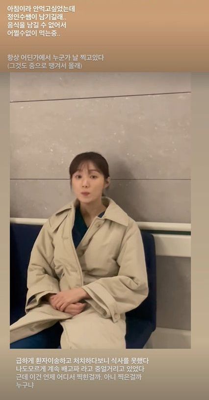 또한 이성경은 촬영 대기 중 '배고파'라고 혼잣말하는 모습이 찍힌 영상을 게재하며 "급하게 환자이성하고 처치하다 보니 식사를 못했다. 나도 모르게 배고파라고 중얼거리고 있었다"며 극 중 의사 역에 몰입한 근황을 전했다.
