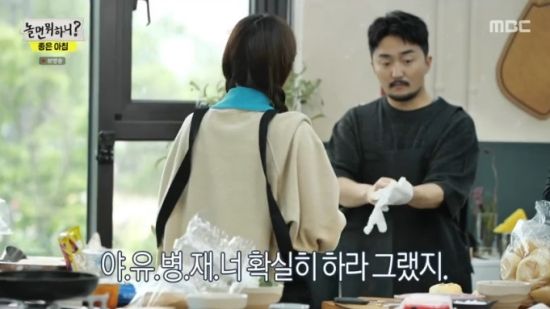 13일 방송된 MBC '놀면 뭐하니?'(이하 '놀뭐')에서는 '좋은 아침' 특집으로 꾸며진 가운데 멤버들이 아침 식사로 판매할 메뉴를 준비하는 장면이 전파를 탔다.